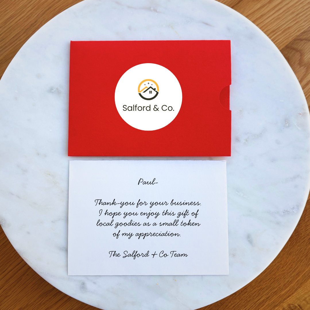 Brand your gift with a custom branded sleeve with an interior sticker seal and/or a personalized note enclosed in a branded pocket sleeve.