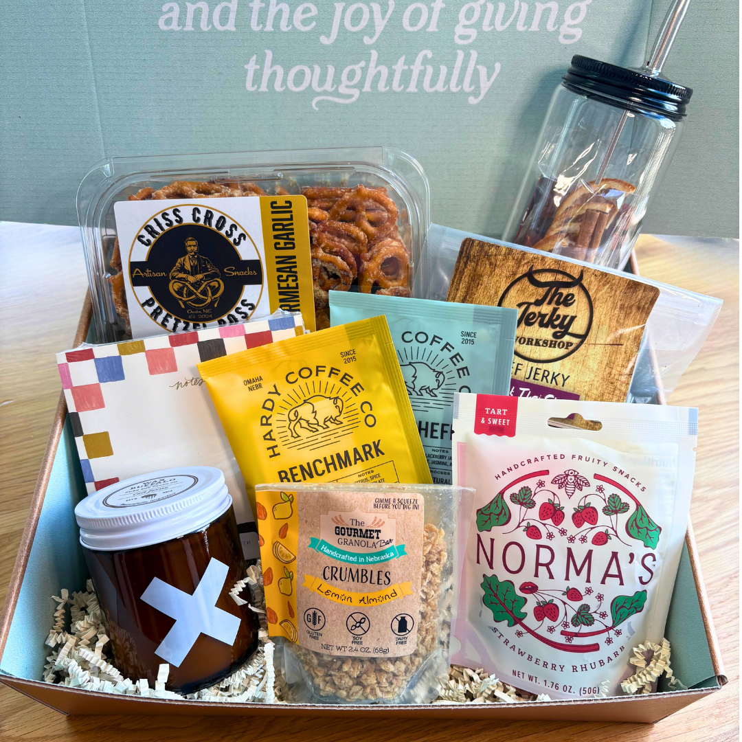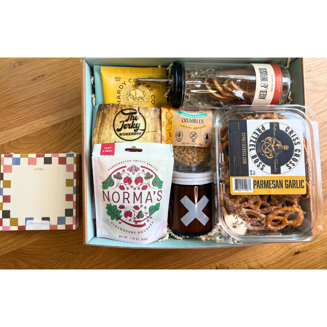 A flavorful fusion of indulgence, inspiration, and everyday comfort, the premium Treat & Thrive Box is designed to fuel productivity and elevate downtime. From Midwest-made snacks to beautifully designed desk essentials and cozy touches, this gift offers a thoughtful balance of energy and ease—ideal for client thank-yous, milestone moments, or a well-deserved personal reward.