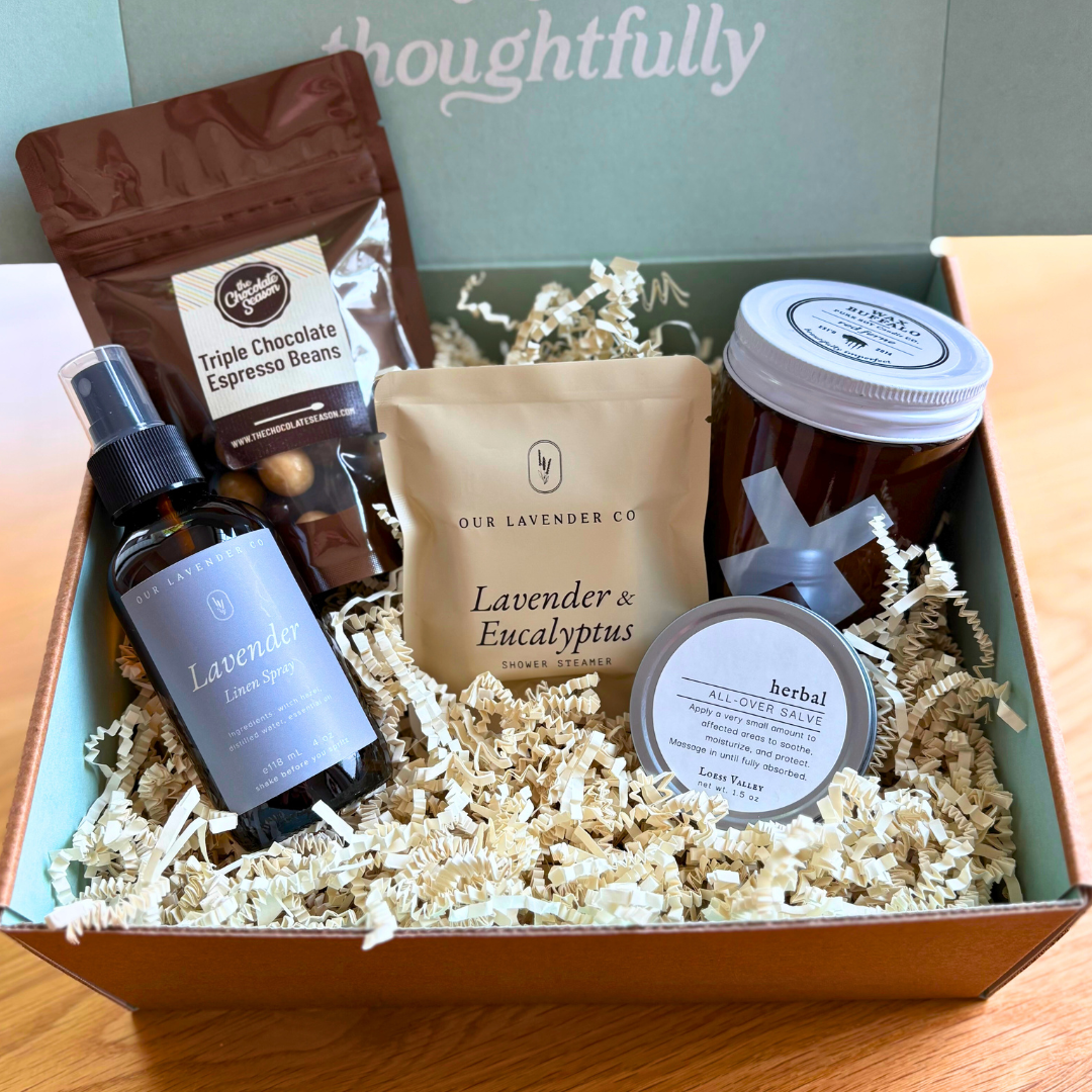 Whether you're gifting a moment of calm or treating yourself to a little peace, The Relax & Recharge Box is your invitation to pause, breathe, and recharge. Thoughtfully curated with soothing scents, nourishing ingredients, and a touch of indulgence, this box is ideal for self-care moments, thank-you gifts, or just because.